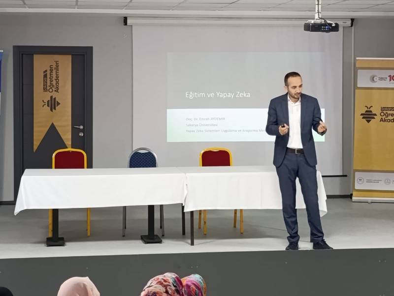 Merkezimiz tarafından Sakara İl Milli Eğitim Müdürlüğü tarafından organize edilen Öğretmen Akademisinde Eğitimde Yapay Zeka konulu ders verilmiştir. Çeşitli branşlardan çok sayıda öğretmenin ilgi ile katıldığı program beğeni ile karşılanmış ve Merkez müdürüne çiçek takdiminde bulunulmuştur.